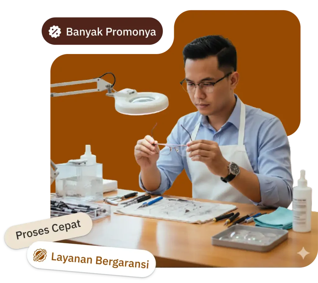 Service Kacamata Murah Bandung Service Kacamata Murah & Cepat Mulai 12 Ribu Perbaikan kacamata profesional dengan harga terjangkau. Dari baut lepas, frame patah, hingga setting ulang semua beres dalam hitungan menit. Dapatkan Promonya Lihat Layanan Kami Keunggulan Layanan & Keunggulan Service Kacamata Kami Kami menangani berbagai kerusakan seperti baut lepas, frame longgar, hingga patah ringan dengan pengerjaan rapi dan akurat. Proses Cepat Perbaikan kacamata tanpa ribet datang, tunggu sebentar, langsung selesai dengan hasil rapi dan presisi. Harga Terjangkau Service mulai dari 12 ribu dengan kualitas terbaik. Hemat biaya tanpa mengorbankan hasil. Bergaransi Setiap perbaikan kami pastikan aman dan tahan lama, jadi kamu bisa pakai dengan aman Berpengalaman Dikerjakan oleh teknisi profesional yang sudah terbiasa menangani berbagai jenis kerusakan kacamata. Layanan Kami Layanan Untuk Anda Service Kacamata Kami Kami menangani berbagai kerusakan seperti baut lepas, frame longgar, hingga patah ringan dengan pengerjaan rapi dan akurat. Perbaikan Baut & Engsel Mengatasi baut lepas atau engsel longgar agar kacamata kembali kokoh dan nyaman digunakan. Rate mulai dari Rp 150.000 Rp 200.000 Hubungi Kami Perbaikan Baut & Engsel Mengatasi baut lepas atau engsel longgar agar kacamata kembali kokoh dan nyaman digunakan. Rate mulai dari Rp 150.000 Rp 200.000 Hubungi Kami Perbaikan Baut & Engsel Mengatasi baut lepas atau engsel longgar agar kacamata kembali kokoh dan nyaman digunakan. Rate mulai dari Rp 150.000 Rp 200.000 Hubungi Kami Perbaikan Baut & Engsel Mengatasi baut lepas atau engsel longgar agar kacamata kembali kokoh dan nyaman digunakan. Rate mulai dari Rp 150.000 Rp 200.000 Hubungi Kami Perbaikan Baut & Engsel Mengatasi baut lepas atau engsel longgar agar kacamata kembali kokoh dan nyaman digunakan. Rate mulai dari Rp 150.000 Rp 200.000 Hubungi Kami Perbaikan Baut & Engsel Mengatasi baut lepas atau engsel longgar agar kacamata kembali kokoh dan nyaman digunakan. Rate mulai dari Rp 150.000 Rp 200.000 Hubungi Kami